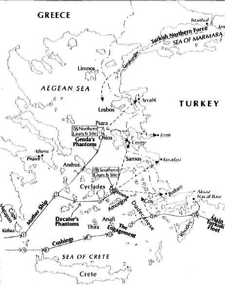 Στον τέταρτο χάρτη, φαίνονται αμερικανικές στρατιωτικές δυνάμεις να αναπτύσσονται στα βόρεια της Χίου και νότια της Αμοργού και να στοχεύουν το Αϊβαλί, τη Σμύρνη, το Τσεσμέ, το Κουσάντασι και την Αλικαρνασσό. Το ‘οπλοστάσιο’ του 6ου στόλου αναπτύσσεται στο Κρητικό αρχιπέλαγος στα βόρεια του νησιού.