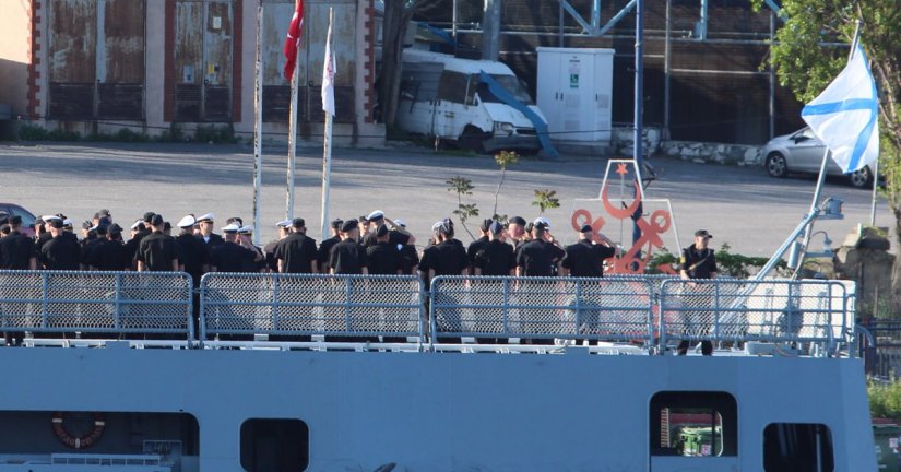Η αφορμή για αυτόν τον αγκυροβολισμό ήταν η έκθεση IDEF 2019, όμως λίγο αργότερα από μπροστά πέρασε ένα ρωσικό υποβρύχιο, το “Kolpino” δίνοντας εικόνα ρωσικής ναυτικής βάσης στα Στενά.