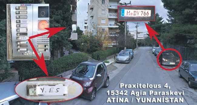 Η Sabah δημοσιεύει αριθμό κυκλοφορίας του αυτοκινήτου τη διεύθυνση τους στην Πραξιτέλους 4 Άγια Παρασκευή και το κουδούνι του με τα αρχικά Y. Es.
