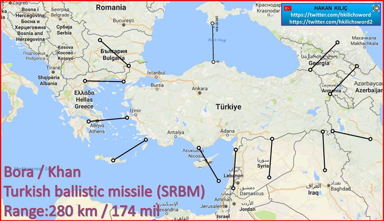 «Από τη Σμύρνη στην Αθήνα η απόσταση είναι περίπου 230 χιλιόμετρα και η εμβέλεια του πυραύλου BORA-1 (KΗAN-1) είναι 280 χιλιόμετρα» και πλέον απειλούν ανοιχτά. Για την Θεσσαλονίκη η απόσταση αυτή είναι 270 χλμ..