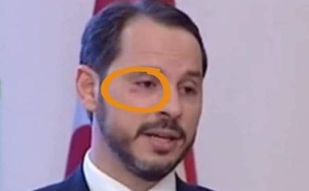 Οι Τούρκοι χρήστες του διαδικτύου διακινούν μια φωτογραφία (πάνω) με τον γαμπρό του Ερντογάν, Μπεράτ Αλμπαϊράκ, να φαίνεται χτυπημένος στο μάτι.