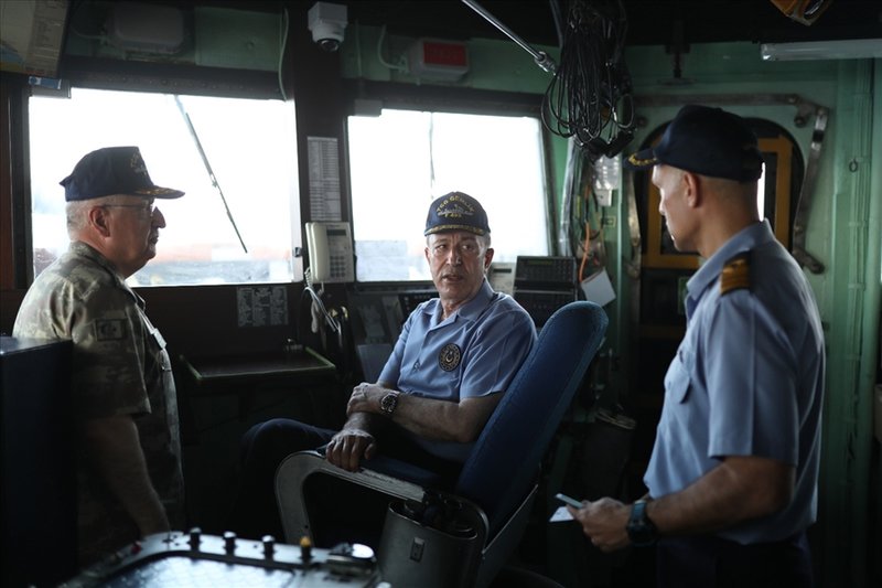 Μιλώντας στο προσωπικό της φρεγάτας της Τουρκίας, ο Ακάρ μίλησε πάλι για «γαλάζια πατρίδα». «Εδώ στην Κύπρο, στην ανατολική Μεσόγειο, στο Αιγαίο, δεν θα ανεχθούμε τίποτα. Από την αρχή λέμε ότι δεν υπάρχει περίπτωση λήψης αποφάσεων χωρίς τη συμμετοχή μας», δήλωσε ο Τούρκος υπουργός Αμυνας.