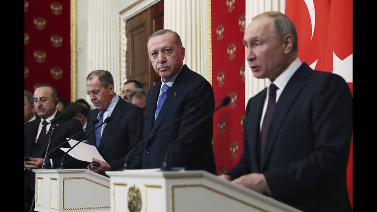 O B.Πούτιν έκανε πολλά ψυχολογικά παιχνίδια στον Τούρκο πρόεδρο Ρ.Τ.Ερντογάν για να του δείξει την πραγματική του θέση απέναντι στην ρωσική ισχύ κατά την συνάντησή τους στην Μόσχα όπου εν τέλει αναγκάστηκε να συμφωνήσει σε κατάπαυση του πυρός στην Συρία.