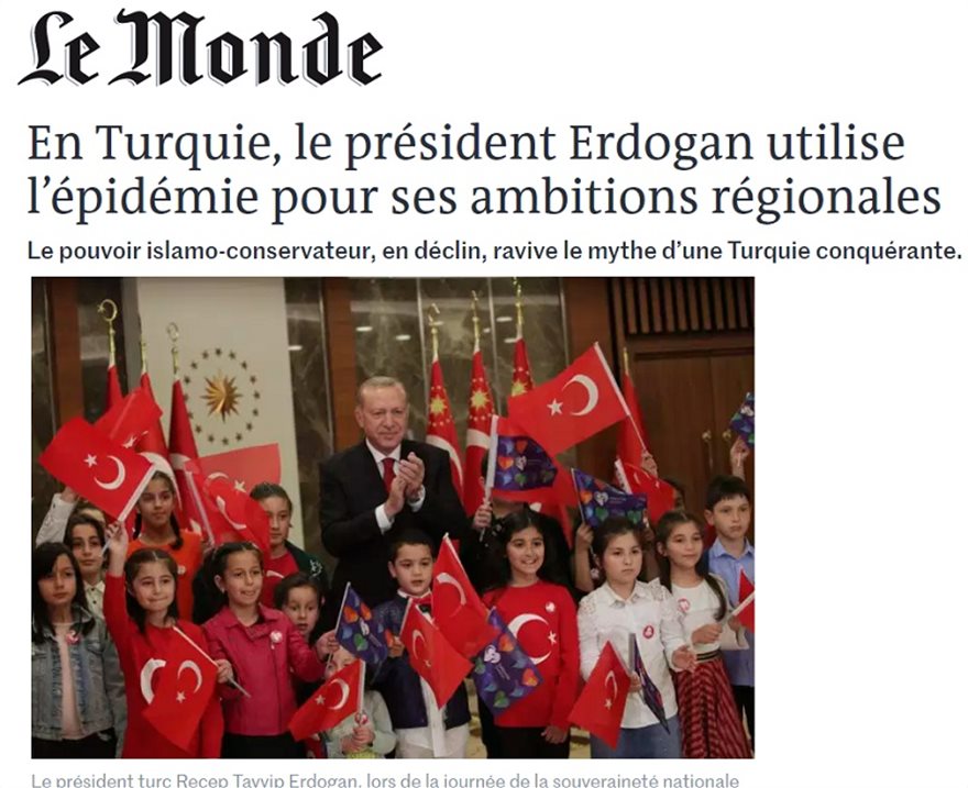 «Ο Ερντογάν εκμεταλλεύεται την πανδημία για τις περιφερειακές του φιλοδοξίες» είναι ο τίτλος άρθρου της γαλλικής εφημερίδας Le Monde, επισημαίνοντας πως μεγάλη ποσότητα ιατρικής βοήθειας έχει διανεμηθεί το τελευταίο διάστημα από την Τουρκία σε περισσότερες από 30 χώρες σε όλο τον κόσμο.