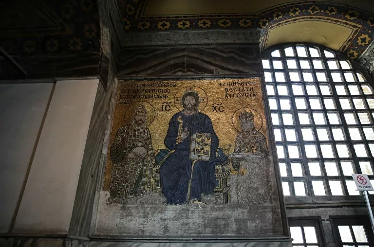 Μετά την απόφαση του ανώτατου δικαστηρίου της Τουρκίας και του Τούρκου προέδρου Ρετζέπ Ταγίπ Ερντογάν για την μετατροπή της Αγίας Σοφίας σε τζαμί, τα ψηφιδωτά και οι τοιχογραφίες στο εσωτερικό του οικουμενικού μνημείου φαίνεται πως θα καλύπτονται για τη μουσουλμανική προσευχή.