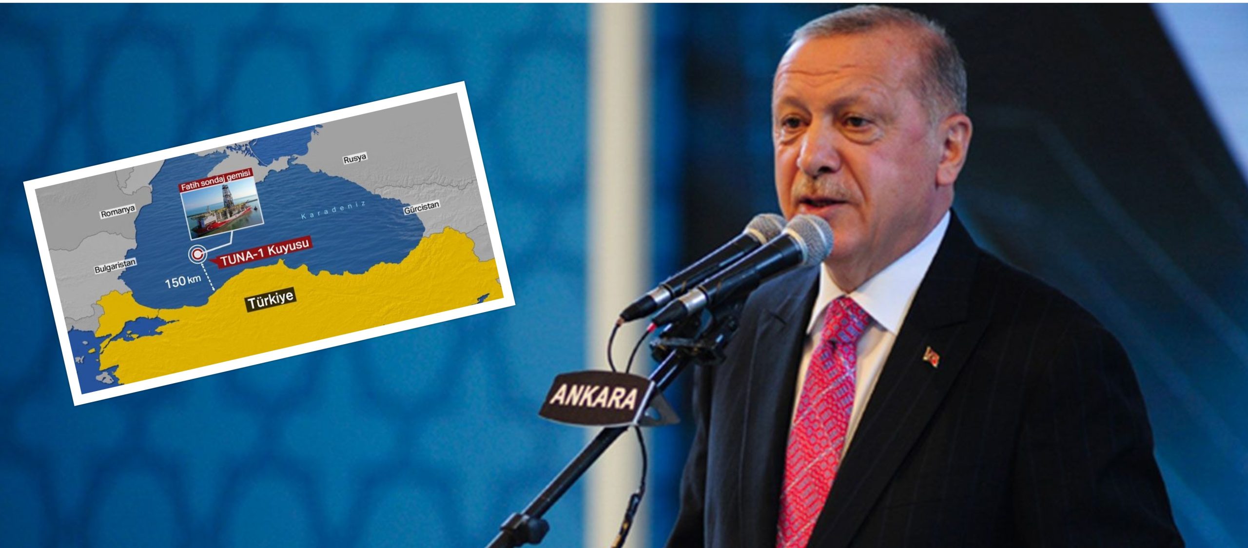 «Η Τουρκία έχει κάνει τη μεγαλύτερη ανακάλυψη φυσικού αερίου στη Μαύρη Θάλασσα”, ανακοίνωσε ο πρόεδρος της Τουρκίας, αναφέροντας πως η ανακάλυψη κοιτάσματος 320 δισεκατομμυρίων κυβικών μέτρων φυσικού αερίου έγινε από το γεωτρύπανο Fatih, στο θαλάσσιο τομέα “Δούναβης-1″, σε απόσταση περίπου 145 χιλιομέτρων βόρεια από την παραλιακή πόλη Ζόνγκουλντακ, κοντά στα όρια της Αποκλειστικής Οικονομικής Ζώνης (ΑΟΖ) της Τουρκίας με την Βουλγαρία, στο δυτικό τμήμα της Μαύρης Θάλασσας. Αναμένεται να βρεθεί μεγαλύτερο. Αυτό είναι ένα μέρος του κοιτάσματος που βρέθηκε. Περιμένουμε αντίστοιχες καλές ειδήσεις και στην ανατολική Μεσόγειο. Θα εκδώσουμε κι άλλες άδειες για έρευνες στην ανατολική Μεσόγειο».