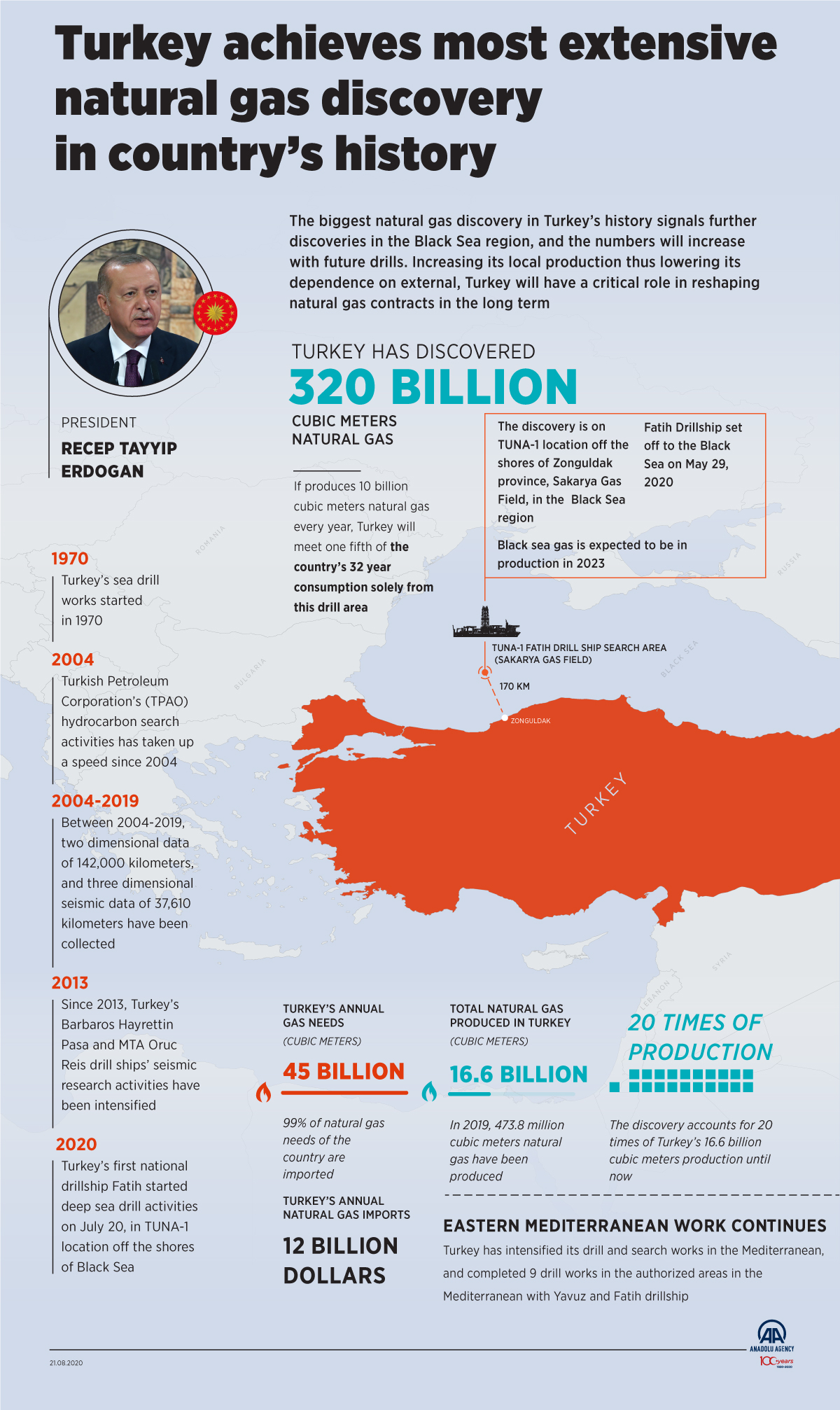 «Η Τουρκία αναμένει πως οι ενεργειακές εισαγωγές της θα μειωθούν σημαντικά μετά την ανακάλυψη μεγάλου κοιτάσματος φυσικού αερίου στη Μαύρη Θάλασσα» δήλωσε χαρακτηριστικά σήμερα Σάββατο ο Τούρκος υπουργός Ενέργειας Φατίχ Ντονμέζ.