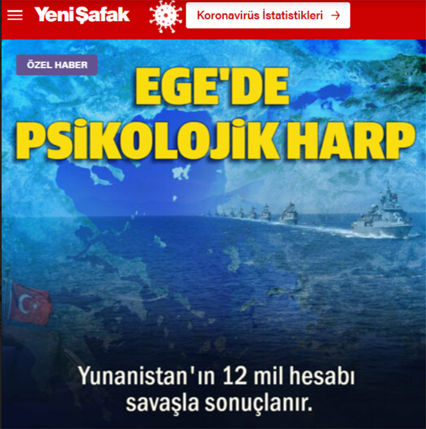Ενδιαφέρον έχει πως η Γενί Σαφάκ, αποκαλεί το Αιγαίο Πέλαγος και σε… «Θάλασσα των νήσων» (Adalar Denizi), όπως πρόσφατα πρότεινε ο απόστρατος ναύαρχος, Τσιχάτ Γιαϊτζί ο οποίος θεωρείται κύριος εμπνευστής των ακραίων διεκδικήσεων της Άγκυρας στο Αιγαίο Πέλαγος και στην ανατολική Μεσόγειο.