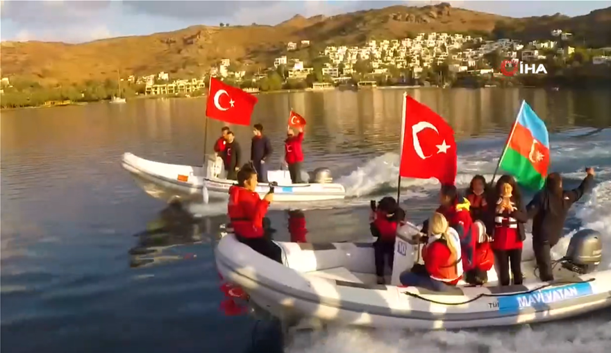 Μέλη της τοπικής οργάνωσης Μπόντρουμ (Αλικαρνασός) του κυβερνώντος κόμματος Δικαιοσύνης και Ανάπτυξης (ΑΚΠ), έστησαν ολόκληρη επειχήρηση προκειμένου ν’ απλώσουν τεράστια τουρκική σημαία στη νησίδα Μπουγιούκ Κιρεμιτ που βρίσκεται απέναντι από τις βραχονησίδες Ίμια.