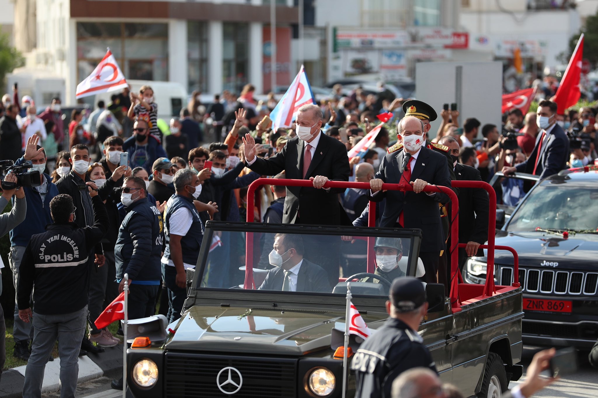 O Τουρκοκύπριος ηγέτης Ερσίν Τατάρ υποδέχθηκε τον Ρετζέπ Ταγίπ Ερντογάν στην Αμμόχωστο, ενώ αυτή την ώρα καταθέτει στεφάνι στο μνημείο Ατατουρκ στην κατεχόμενη Λευκωσία και θα ακολουθήσει στρατιωτική παρέλαση στη λεωφόρο Φαζίλ Κιουτσιούκ.