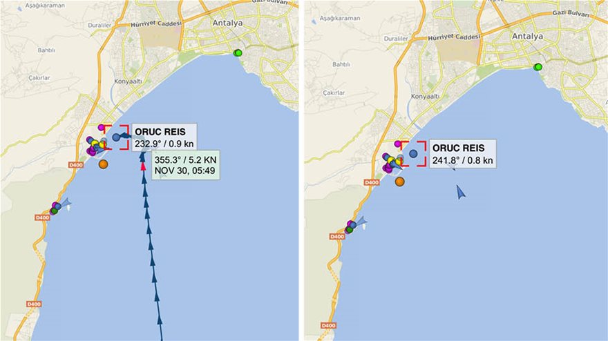 Στο λιμάνι της Αττάλειας βρίσκεται εδώ και λίγες ώρες το τουρκικό ερευνητικό πλοίο Oruc Reis έπειτα από περιπλάνηση 49 ημερών σε μια μεγάλη θαλάσσια περιοχή ανατολικά της Ρόδου και νότια του Καστελλόριζου.