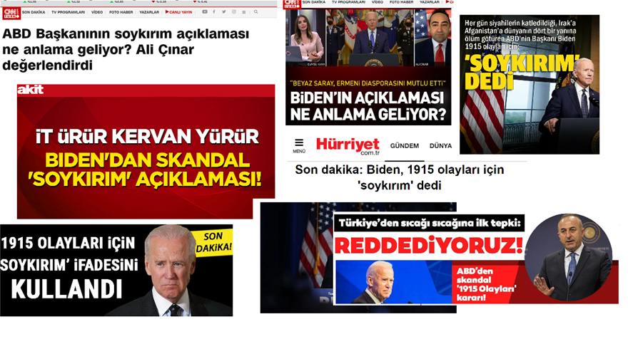 Η πρώτη αντίδραση των τουρκικών ΜΜΕ στην ιστορική απόφαση του προέδρου των ΗΠΑ Τζο Μπάιντεν, να αναγνωρίσει τη Γενοκτονία των Αρμενίων από την Οθωμανική Αυτοκρατορία κατά τη διάρκεια του Α΄ Παγκοσμίου Πολέμου, είναι αρκετά έντονη.