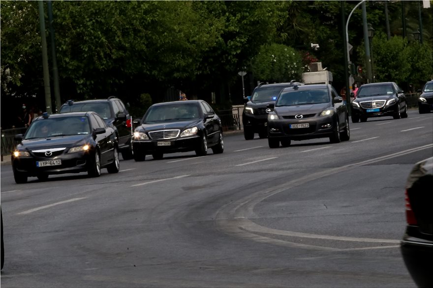 Ο Τσαβούσογλου έφτασε στο αεροδρόμιο «Ελευθέριος Βενιζέλος» και η συνοδεία του τον οδήγησε στο ξενοδοχείο «Μεγάλη Βρετάνια».