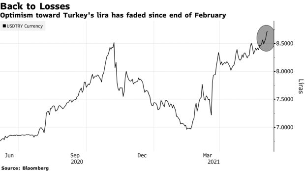 Την Τρίτη, ο Ερντογάν έκανε μια αόριστη αναφορά στους καλοκαιρινούς μήνες ως ημερομηνία στόχου για μείωση του κόστους δανεισμού. Ώρες αργότερα, ο κυβερνήτης της κεντρικής τράπεζας Σαχάπ Κάβιογλου προσπάθησε να περιορίσει τη ζημιά. «Οι προσδοκίες για πρόωρη χαλάρωση της πολιτικής, οι οποίες δεν βασίζονται σε μια λογική πολιτική, πρέπει να εξαφανιστούν», είπε στους επενδυτές.