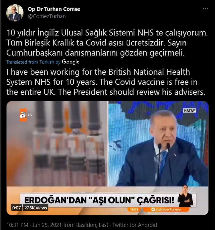 «Εργάζομαι για το Βρετανικό Εθνικό Σύστημα Υγείας εδώ και 10 χρόνια. Το εμβόλιο κατά του κορωνοϊού είναι δωρεάν σε ολόκληρη το Ηνωμένο Βασίλειο. Ο Πρόεδρος θα έπρεπε να επανεξετάσει τους συμβούλους του»…
