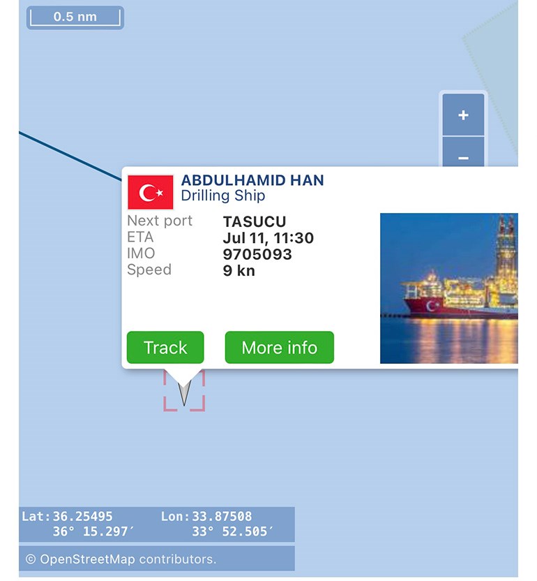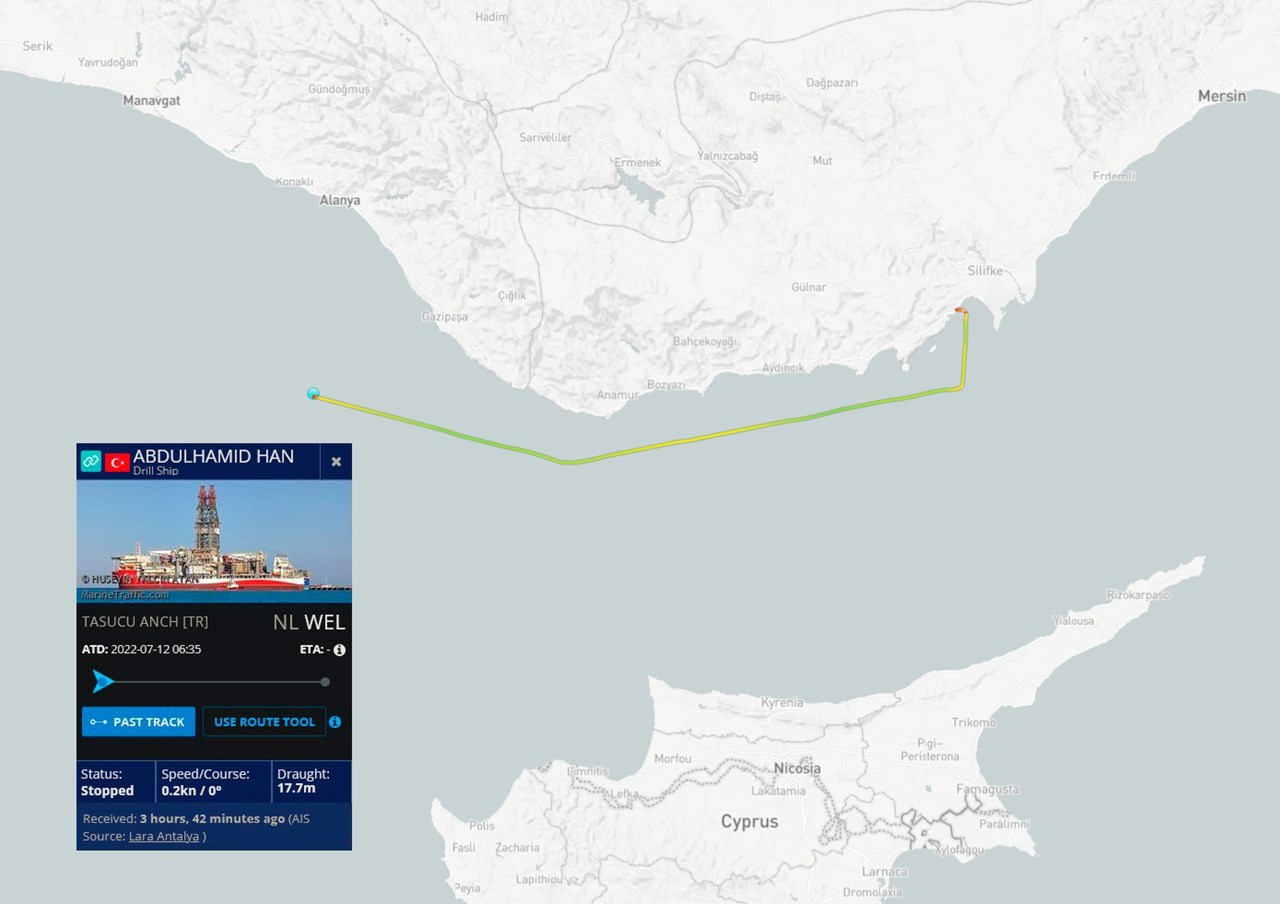 Νωρίς το πρωί της Τετάρτης, το τουρκικό γεωτρύπανο έφτασε λίγα χιλιόμετρα μακριά από το λιμάνι Γκαζίπασα.