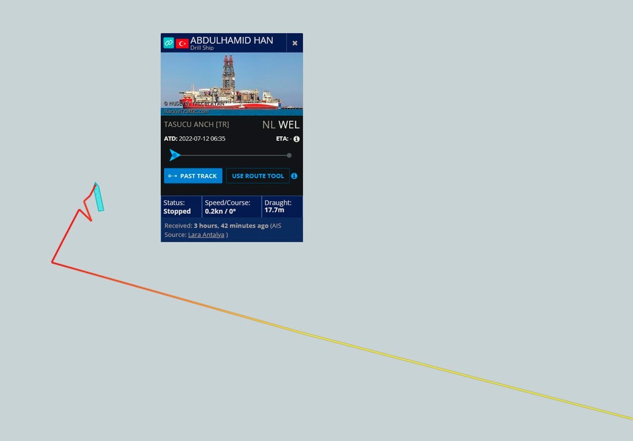 Στις 17:00 της Τρίτης, 9 Αυγούστου, το «Αμπντουλχαμίντ Χαν» ξεκίνησε να ταξιδεύει με 9 ναυτικά μίλια την ώρα έχοντας ως προορισμό το κοίτασμα Yörükler-1, 55 χιλιόμετρα έξω από τον Γκαζίπασα, κοντά στην Αττάλεια.