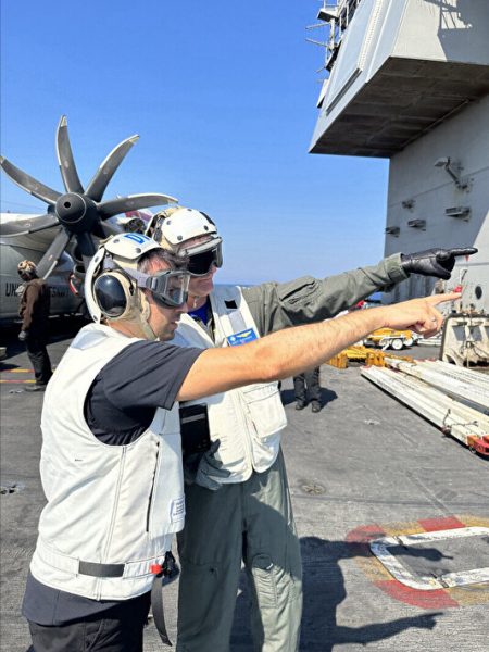 Η Yeni Safak φιλοξενεί φωτορεπορτάζ από τους τεχνικούς ελέγχους που πραγματοποίησε ο Μπαϊρακτάρ, όπως ενημερώνει η τουρκική εφημερίδα. Αυτός που συνόδευσε τον Τούρκο επιχειρηματία στο αμερικάνικο αεροπλανοφόρο ήταν ο υποναύαρχος Έρικ Έσλιτς.