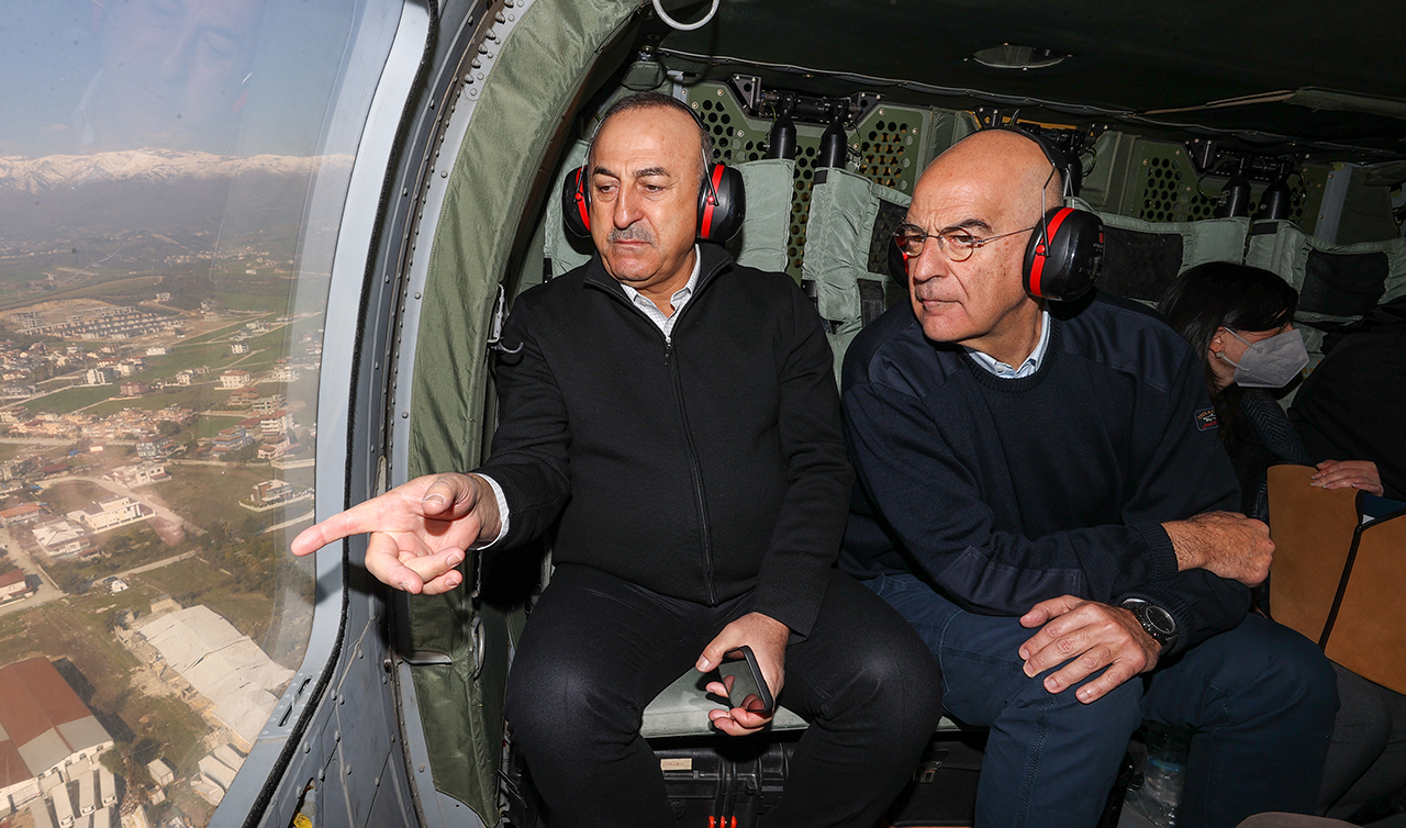 Ο Έλληνας και ο Τούρκος υπουργός Εξωτερικών είχαν έναν θερμό εναγκαλισμό μπροστά στις κάμερες στα Άδανα και στη συνέχεια πέταξαν με ελικόπτερο πάνω από τις πληγείσες περιοχές, προτού μεταβούν στο Κέντρο Πολιτικής Προστασίας στην Αντιόχεια, όπου λαμβάνονται οι αποφάσεις για τη διαχείριση της ανθρωπιστικής -και όχι μόνο- κρίσης που προέκυψε μετά τις φονικές δονήσεις.