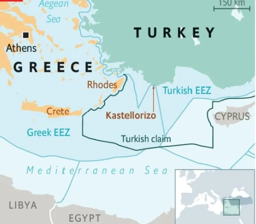 Στον αντίποδα, η Τουρκία λέει ότι το νησί είναι πολύ μικρό και απέχει πολύ από την ελληνική ηπειρωτική χώρα για να δικαιούται ΑΟΖ. Επίσης, η Άγκυρα καταγγέλλει ότι οι ελληνικές αξιώσεις μπλοκάρουν την έξοδο της Τουρκίας στην Μεσόγειο» συμπληρώνεται στο δημοσίευμα.
