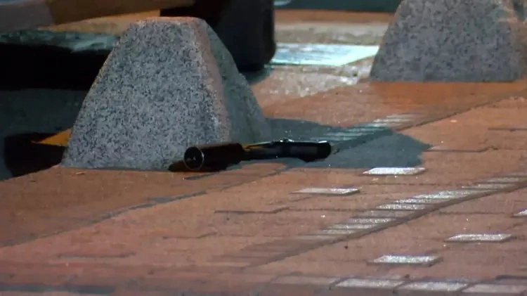 Φωτογραφίες από τη σκηνή δείχνουν ένα ημιαυτόματο πιστόλι με σιγαστήρα να βρίσκεται στο πεζοδρόμιο δίπλα σε ένα λευκό αυτοκίνητο που ήταν σταθμευμένο ανάμεσα σε δύο άλλα οχήματα.