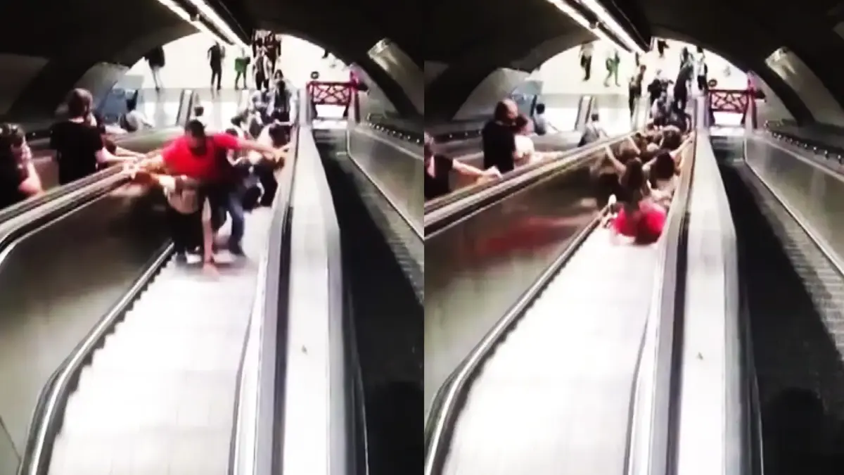 Όπως φαίνεται σε βίντεο που κυκλοφορεί, η κυλιόμενη σκάλα που οδηγεί στην έξοδο από το μετρό, ξαφνικά άρχισε να κινείται προς την αντίθετη κατεύθυνση.