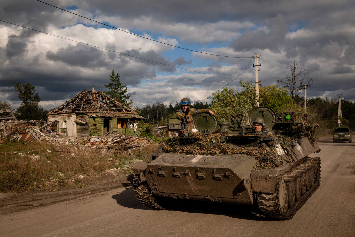 Σαν από τρέλα οι Ρώσοι στρατιώτες που βρίσκονται επί φορτηγού και ενός ΤΟΜΠ MTLB περνάνε μέσα από τα κενά των ουκρανικών αρμάτων που αποσβολωμένα προσπαθούν να τους αναχαιτίσουν.