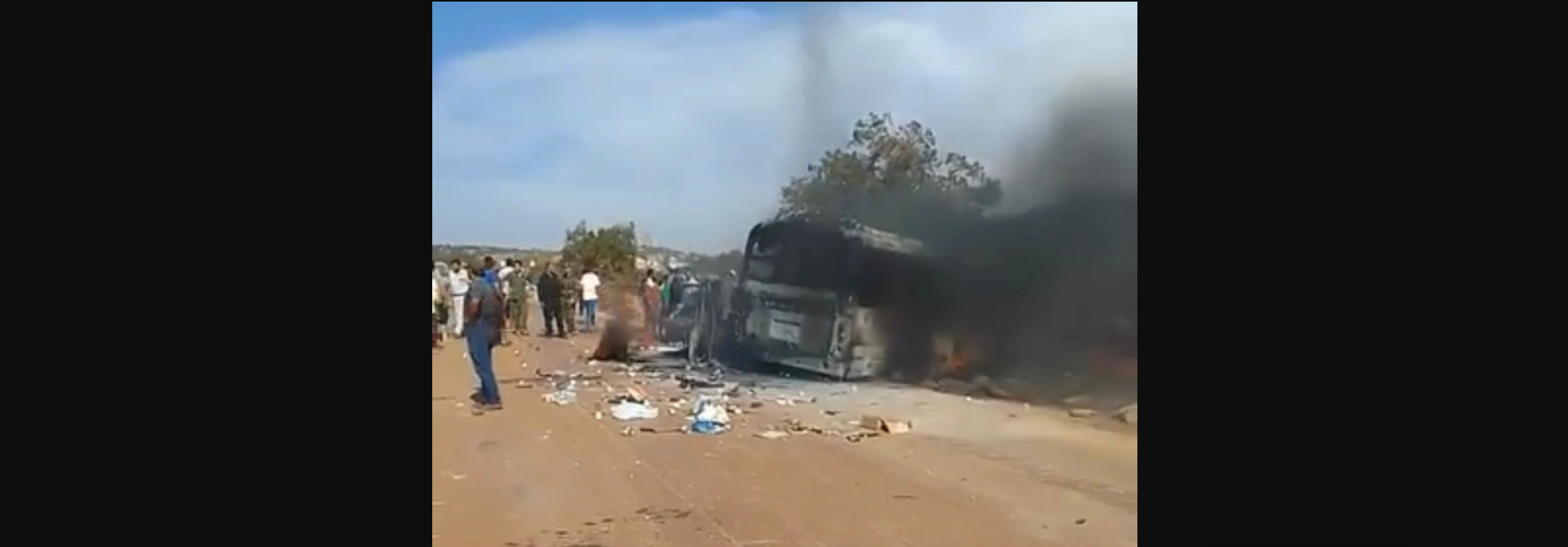 Όπως θα δείτε παρακάτω το λεωφορείο που μεταφέρει την ελληνική αποστολή έχει τυλιχτεί στις φλόγες.