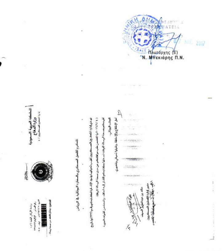 Πιστοποιητικά εκπροσώπησης του Βασιλείου της Σαουδικής Αραβίας από τον κ. Βασίλειο Παπαδόπουλο, που είναι τα ακόλουθα: