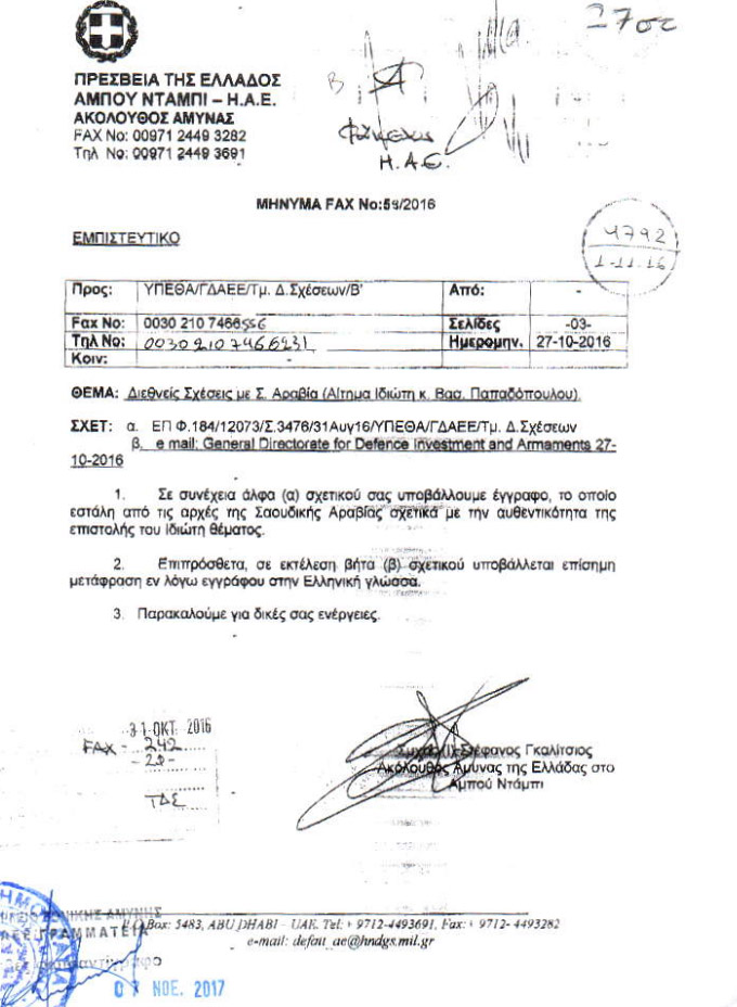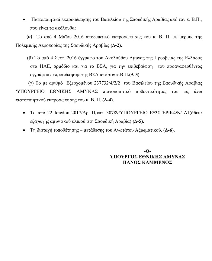 Το από 22 Ιουνίου 2017/Αρ. Πρωτ. 30789/ΥΠΟΥΡΓΕIΟ ΕΞΩΤΕΡΙΚΩΝ/ Δ1(άδεια εξαγωγής αµυντικού υλικού στη Σαουδική Αραβία) (Δ-5).