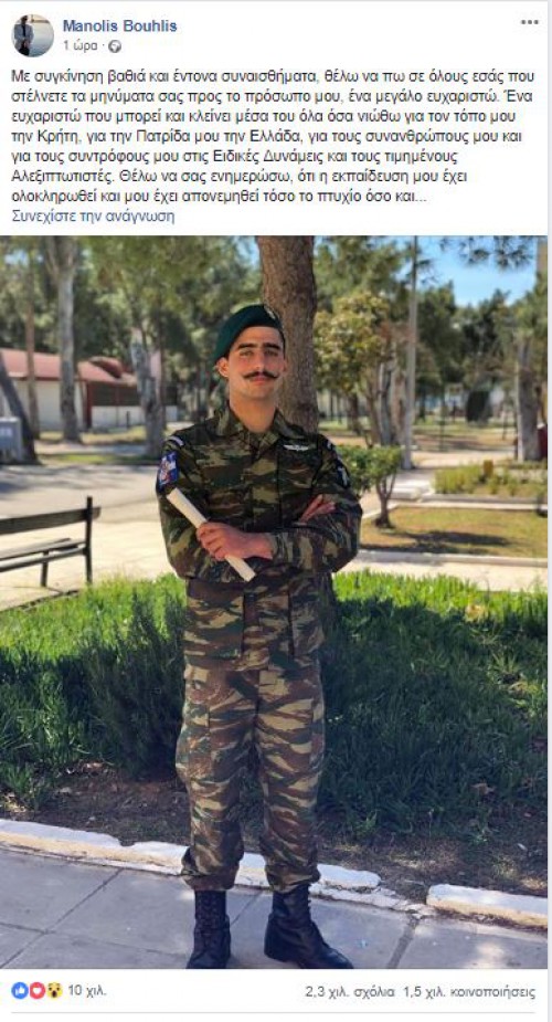Ένα ευχαριστώ που μπορεί και κλείνει μέσα του όλα όσα νιώθω για τον τόπο μου την Κρήτη, για την Πατρίδα μου την Ελλάδα, για τους συνανθρώπους μου και για τους συντρόφους μου στις Ειδικές Δυνάμεις και τους τιμημένους Αλεξιπτωτιστές.