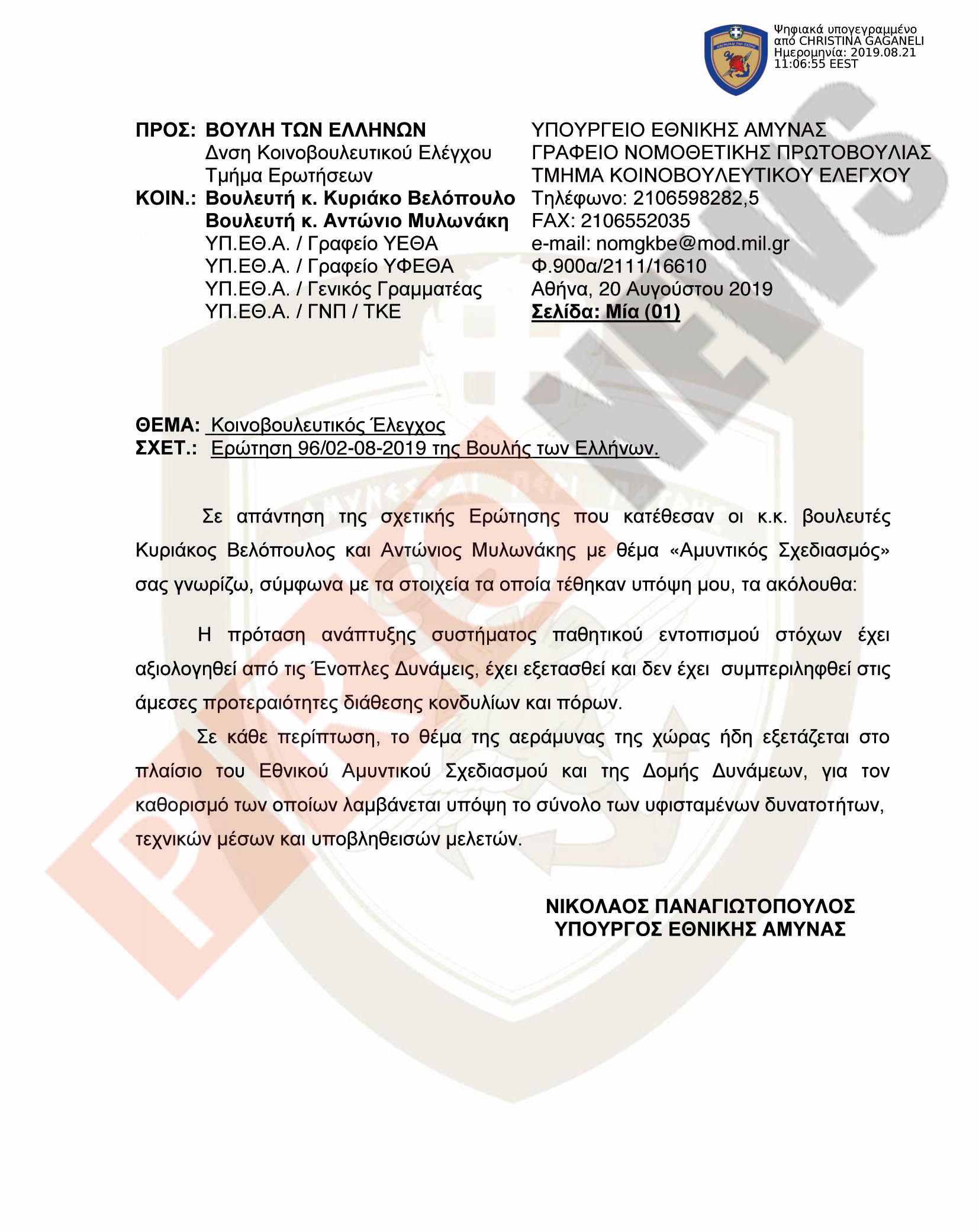 Η ερώτηση του Κυριάκου Βελόπουλου και του Αντώνη Μυλωνάκη ήταν βασισμένη στο ρεπορτάζ του pronews.gr το οποίο έθετε το ερώτημα γιατί δεν προχώρησε ποτέ η ολοκλήρωση της ανάπτυξης του “Hempas”. To κείμενο της ερώτησης ήταν απόλυτα εμπεριστατωμένο και σίγουρα δεν καλύπτεται από την απάντηση που έδωσε ο υπουργός Εθνικής Άμυνας Νίκος Παναγιωτόπουλος.