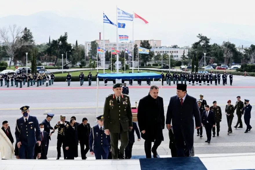 O υπουργός Εθνικής Άμυνας, Νίκος Παναγιωτόπουλος, συναντήθηκε σήμερα με τον υπουργό Άμυνας της Ινδονησίας Πραμπόουο Σουμπιάντο (Prabowo Subianto) στο πλαίσιο της επίσημης επίσκεψης που πραγματοποίησε ο τελευταίος στην Ελλάδα.