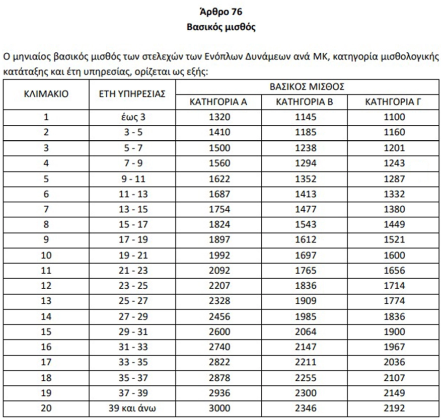 Οι μισθοί στις Ένοπλες Δυνάμεις