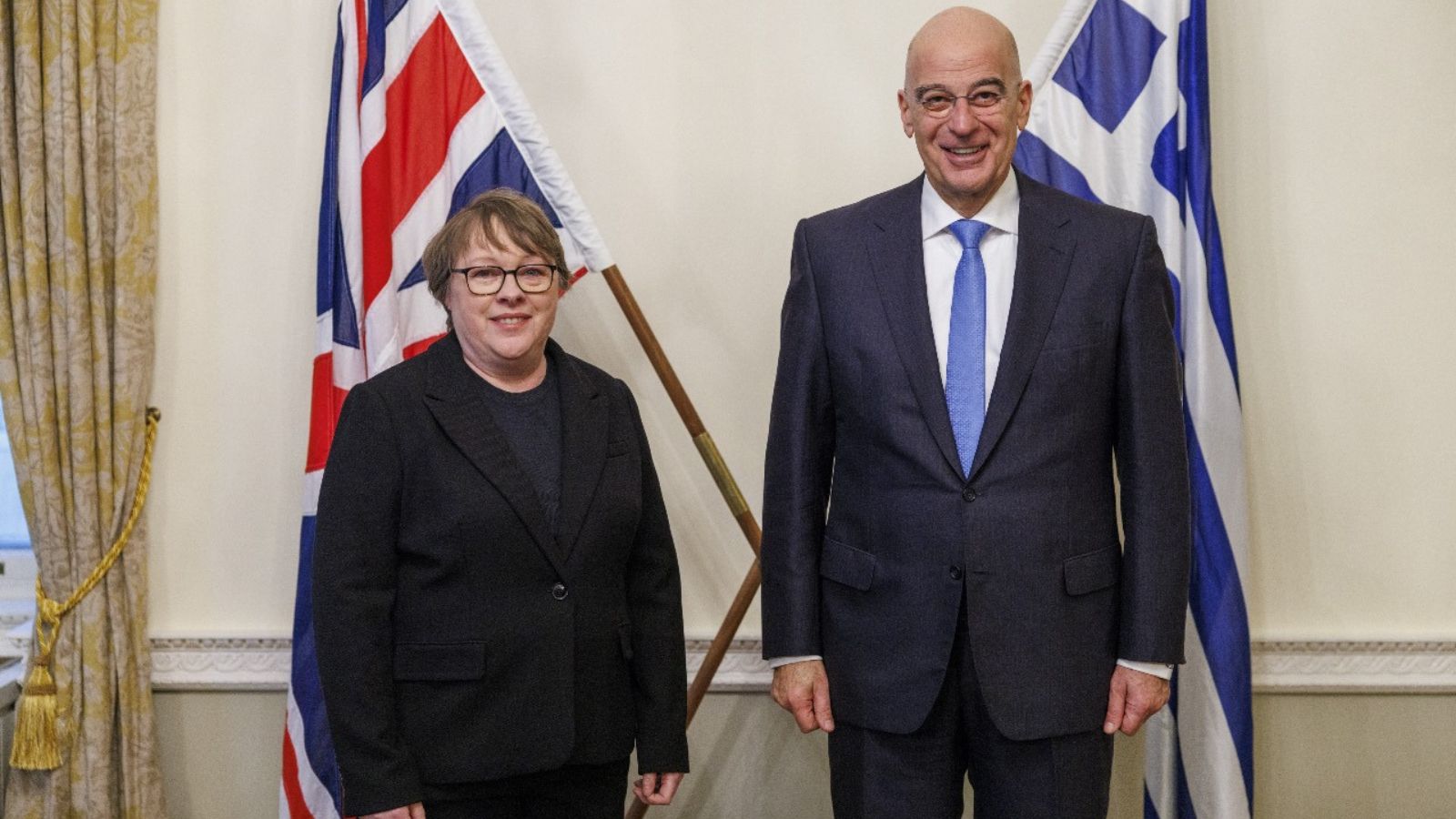 \Ο υπουργός Εθνικής Άμυνας, Νίκος Δένδιας στο πλαίσιο της επίσκεψής του στο Λονδίνο, συναντήθηκε νωρίτερα σήμερα Δευτέρα (24/2) με την υφυπουργό Άμυνας της Βρετανίας Μαρία Ίγκλ.