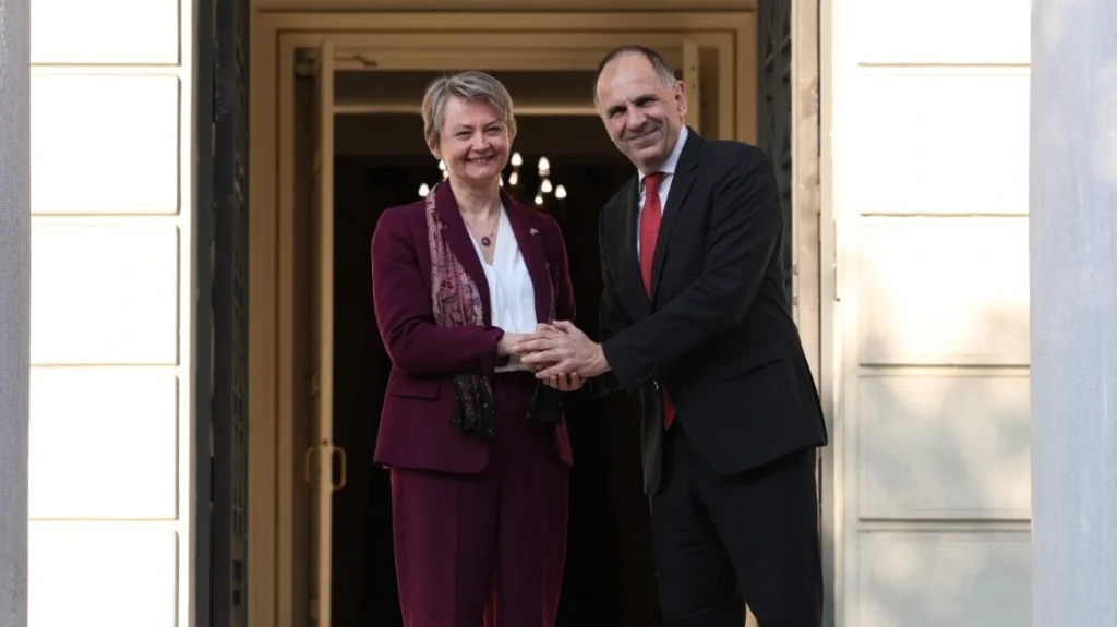 Το ζήτημα της πώλησης των Eurifighter στην Τουρκία έθιξε ο υπουργός Εξωτερικών Γιώργος Γεραπετρίτης κατά τη συνάντηση του σήμερα το απόγευμα με την Βρετανή ομόλογο του Ιβέτ Κούπερ, με την τελευταία να μην δίνει καμία απάντηση ενώ από την άλλη ζήτησε από την χώρα μας να μετάσχει ακόμα περισσότερο στο πλευρό της Ουκρανίας.