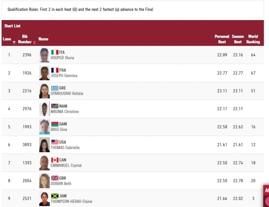 Θυμίζουμε ότι η Ελληνίδα πρωταθλήτρια δεν τα κατάφερε στην αρχή για μόλις ένα χιλιοστό του δευτερόλεπτου, αλλά οι διοργανωτές την συμπεριέλαβαν στην κούρσα που είναι προγραμματισμένη για τις 13:32 σήμερα.