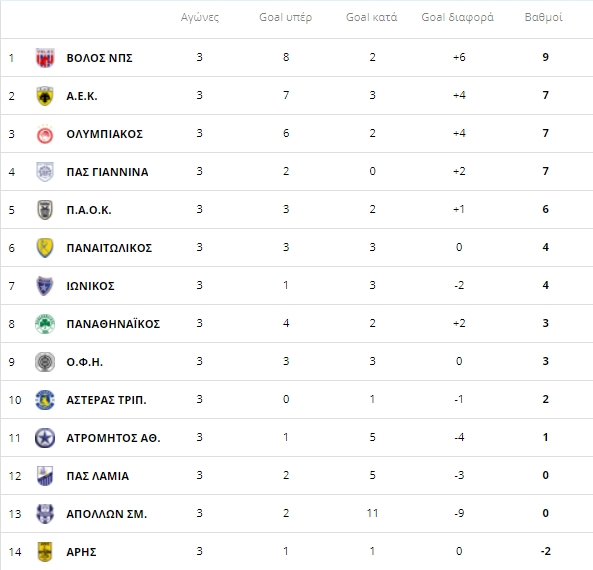 Ο Βόλος αποτελεί την ευχάριστη έκπληξη του φετινού πρωταθλήματος και με 3/3 νίκες βρίσκεται μόνος πρώτος στην κορυφή της βαθμολογίας.
