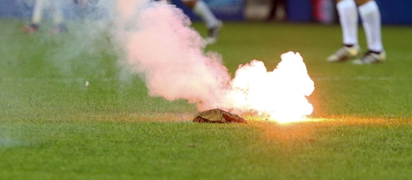 Η φωτοβολίδα βρήκε τον Μάτας Σκρνα και φυσικά μετά το συμβάν ο αγώνας διακόπηκε.