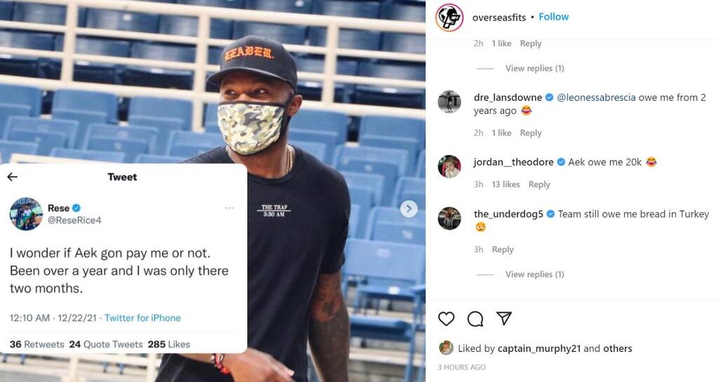 Σε έναν γνωστό λογαριασμό στα social media, οι δύο Αμερικανοί παίκτες ανέφεραν ότι η Ένωση τους οφείλει 20 και 19 χιλιάδες αντίστοιχα, ενώ ο γκαρντ του ΠΑΟΚ έβρισε τον «Δικέφαλο».