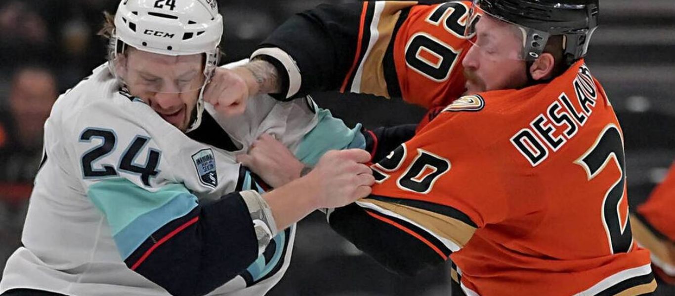 Ο Μάικ Σμιθ των Όϊλερς και ο Καμ Τάλμποτ των Φλέιμς όχι μόνο ήρθαν στα χέρια αλλά αντάλλαξαν και γροθιές πριν επέμβουν οι διαιτητές και τους χωρίσουν.