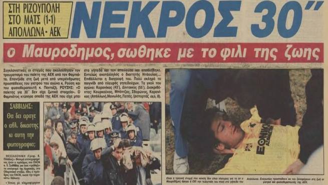 Το περιστατικό που συγκλόνισε την Ελλάδα συνέβη την περίοδο 1986-87 κατά τη διάρκεια ενός αγώνα της Ένωσης με τον Απόλλωνα στη Ριζούπολη και όσοι το έζησαν από κοντά, δύσκολα κατάφεραν να το σβήσουν από τη μνήμη τους.