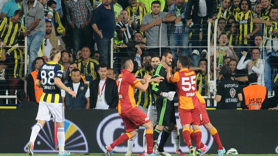 Μετά τη λήξη, οι παίκτες των δύο ομάδων έγιναν έναν κουβάρι, άρχισαν να ανταλλάσσουν γροθιές και κλωτσιές, μετατρέποντας έτσι τον αγωνιστικό χώρο της «Τουρκ Τέλεκομ» σε ρινγκ!