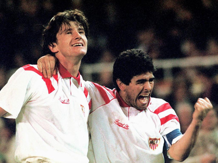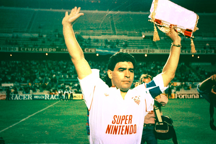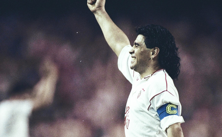 Στον ισπανικό νότο προσγειώνεται και αυτός, ο παμέγιστος, ο παίκτης – μύθος που αναζητά ομάδα για να αναγεννήσει την καριέρα του. Το φλερτ με τη Μαρσέιγ του Μπερνάρ Ταπί χαλάει την τελευταία στιγμή και ο Ντιέγκο Μαραντόνα επιλέγει τη Σεβίλλη για να σμίξει με τον Κάρλος Μπιλάρδο. Τον προπονητή με τον οποίο είχαν οδήγησαν την Αργεντινή στην κορυφή του κόσμου έξι χρόνια νωρίτερα.