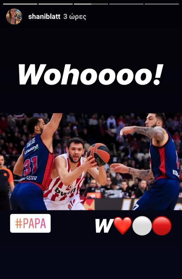 Η “μαγική” εμφάνιση του Παπανικολαού “τρέλανε” τους φίλους του Ολυμπιακού αλλά και την κόρη του προπονητή του Ντέιβιντ Μπλατ, Σάνι, η οποία ανέβασε στον λογαριασμό της στο instagram τον Έλληνα φόργουορντ, πανηγυρίζοντας την “ερυθρόλευκη” νίκη.