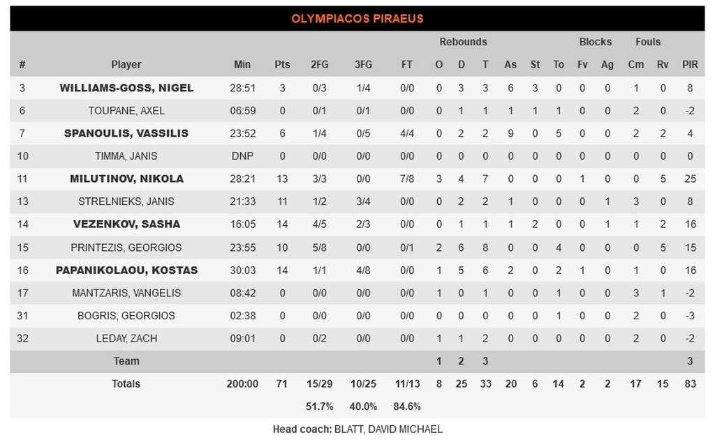 Οι «ερυθρόλευκοι» πανηγύρισαν την 12 νίκη τους σε 19 αγώνες στη Euroleague κι εξακολουθούν να βρίσκονται σε τροχιά τετράδας! Οι παίκτες του Μπλατ έπαιξαν εξαιρετική άμυνα, μέσω της οποίας «βραχυκύκλωσαν» την ομάδα του Γιώργου Μπαρτζώκα!