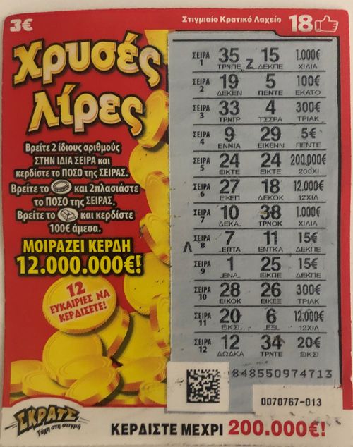 Το «κρεσέντο» κερδών ξεκίνησε με έναν τυχερό που κέρδισε 100.000 ευρώ με ένα δελτίο «Super Γκολ στην Τύχη» αξίας δύο ευρώ. Τα νέα κυκλοφόρησαν στον τύπο κι από στόμα σε στόμα έφτασαν στα αυτιά ενός Αγρινιώτη που πίστεψε ότι θα μπορούσε να κερδίσει κι αυτός. Επέλεξε το εορταστικό παιχνίδι «Ρόδι Είναι και Κερδίζει» και είδε την έμπνευσή του να επιβεβαιώνεται, αφού κέρδισε 250.000 ευρώ με πέντε ευρώ. Το τρίτο χτύπημα της τύχης ήρθε με ένα δελτίο «Χρυσές Λίρες» των 3 ευρώ που χάρισε σε έναν άλλο κάτοικο της περιοχής 200.000 ευρώ.