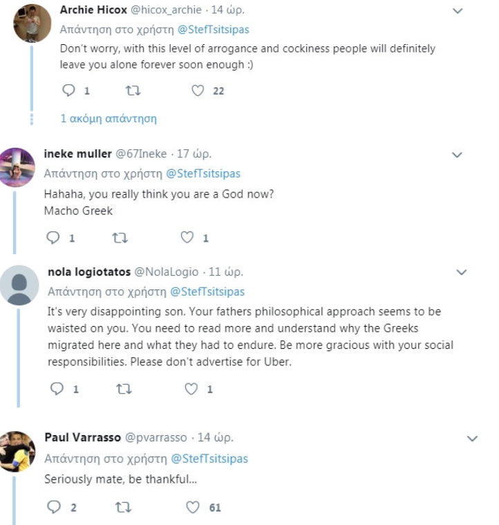 Ένα σχόλιο του Στέφανου Τσιτσιπά στο twitter οδήγησε σε μία ξαφνική «επίθεση» εναντίον του, με πλήθος χρηστών να τον κατηγορούν για… βεντετισμό, μετά τις επιτυχίες του στο Australian Open.