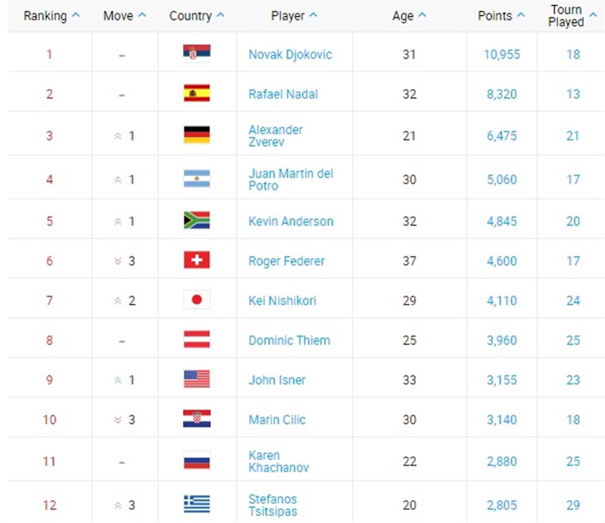 Στην κορυφή παραμένει ο νικητής του Αυστραλιανού Open Νόβακ Τζόκοβιτς και δεύτερος είναι ο ηττημένος Ράφα Ναδάλ, ενώ τρίτος ανέβηκε ο Αλεξάντερ Ζβέρεφ.