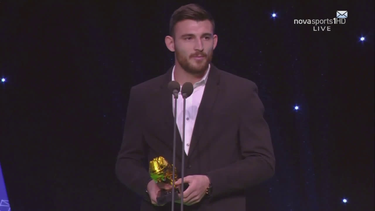 Το άγχος έφαγε τον Δημήτρη Μάνο, ο οποίος πήρε βραβείο για τον τίτλο του πρώτου σκόρερ της περσινής Football League. Ο επιθετικός του Ολυμπιακού, ο οποίος αγωνίζεται αυτή τη στιγμή ως δανεικός στον ΠΑΣ Γιάννενα, αφού παρέλαβε το σχετικό βραβείο από τον Τάκη Γκώνια, άρχισε να ευχαριστεί οικογένεια, φίλους, γνωστούς και συμπαίκτες.